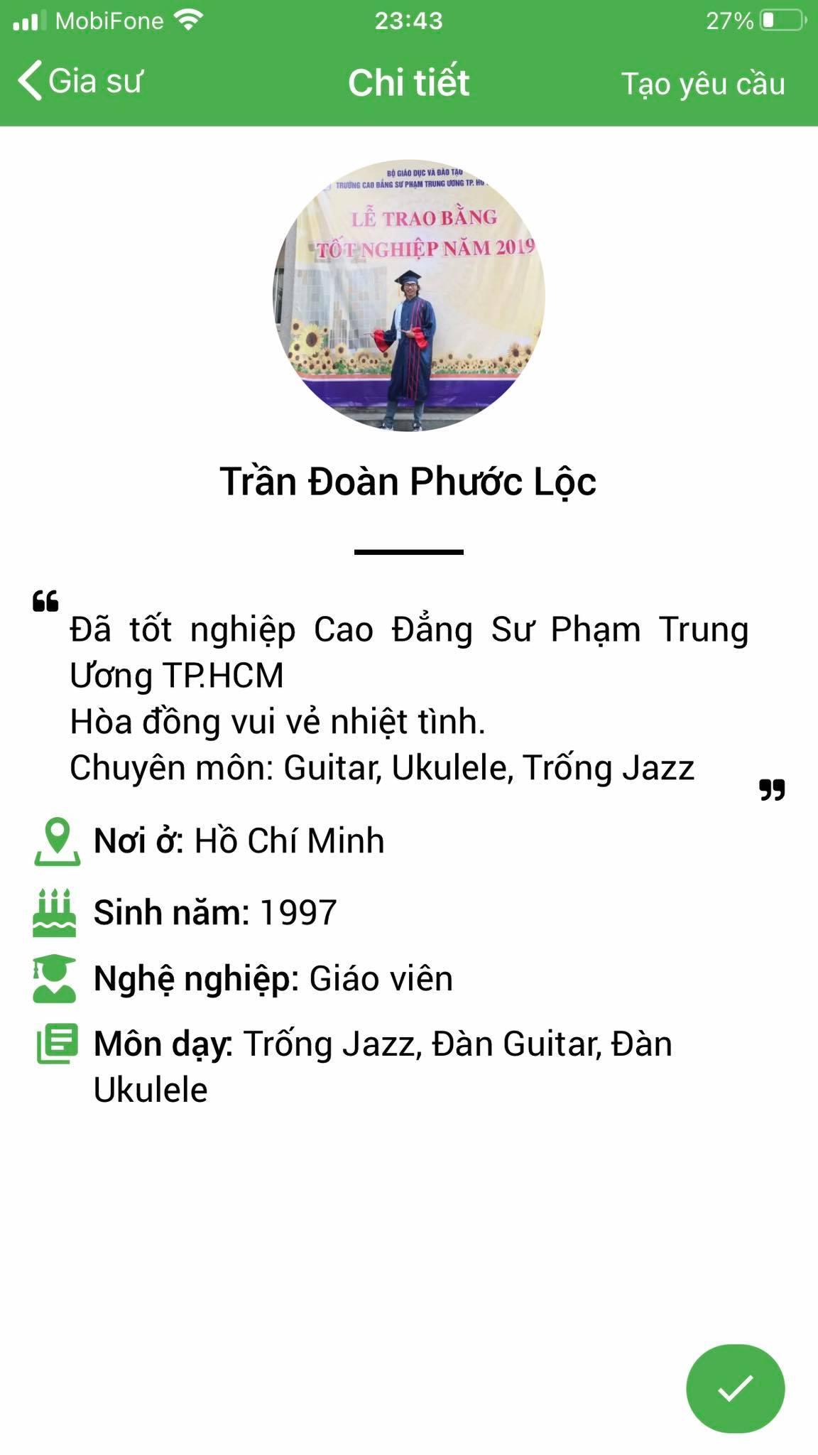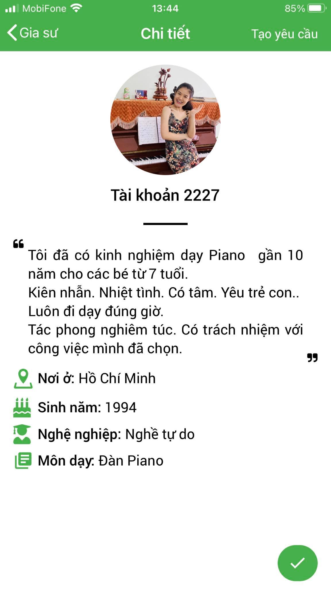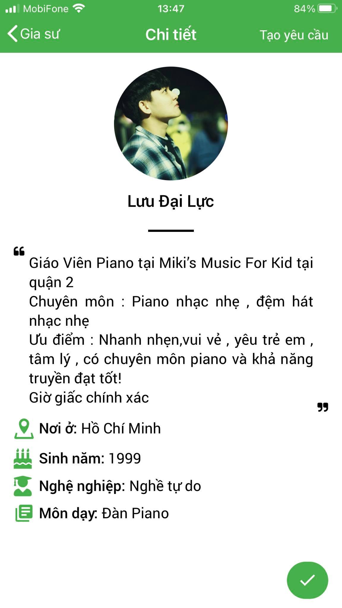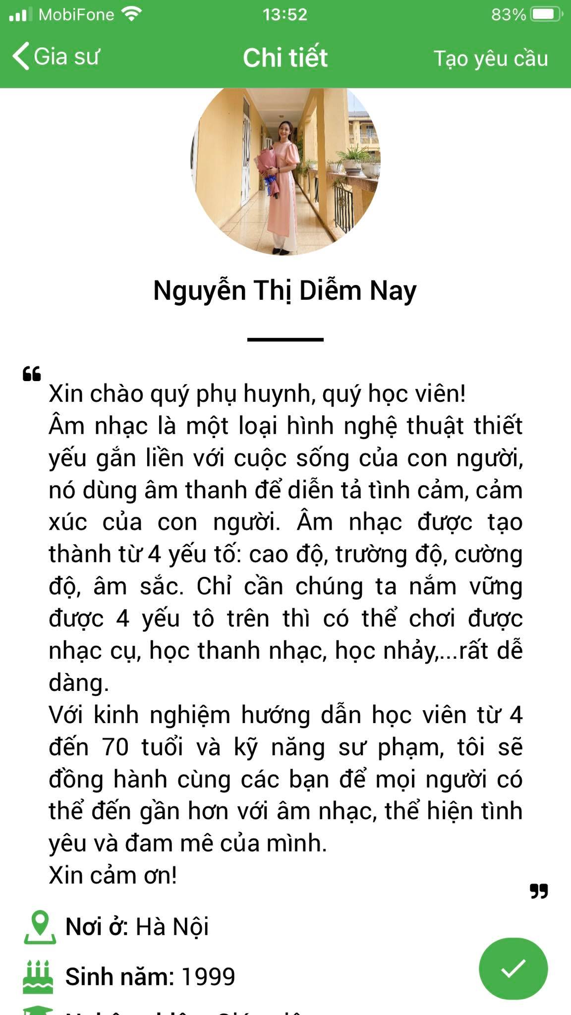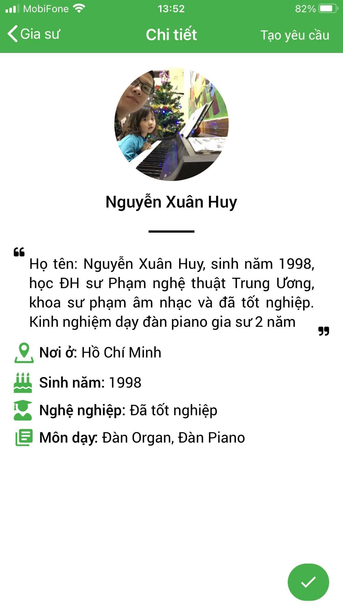 Bằng những thao tác đơn giản và thuận tiện, các học viên sẽ tìm cho mình gia sư phù hợp bằng nhiều tiêu chí khác nhau, dễ dàng tra cứu thông tin gia sư và nội dung lớp học; đồng thời có thể gửi yêu cầu học thử 02 buổi với gia sư mà mình chọn, nếu không phù hợp thì học viên sẽ được tư vấn kỹ hơn và tiếp tục chọn gia sư đến khi nào phù hợp mới thôi.